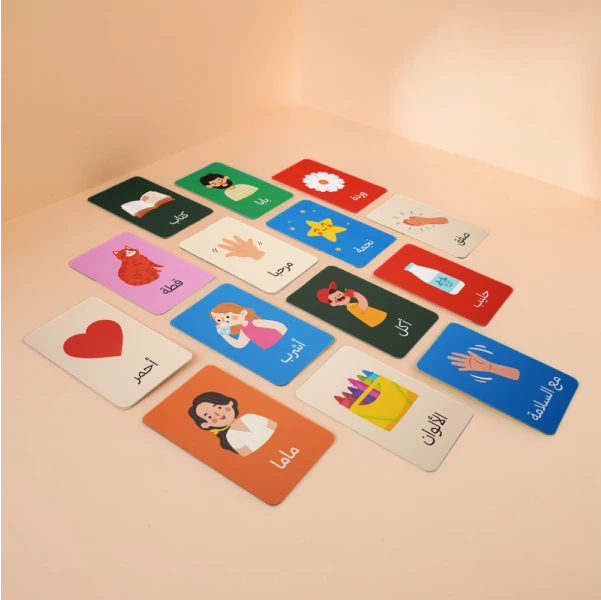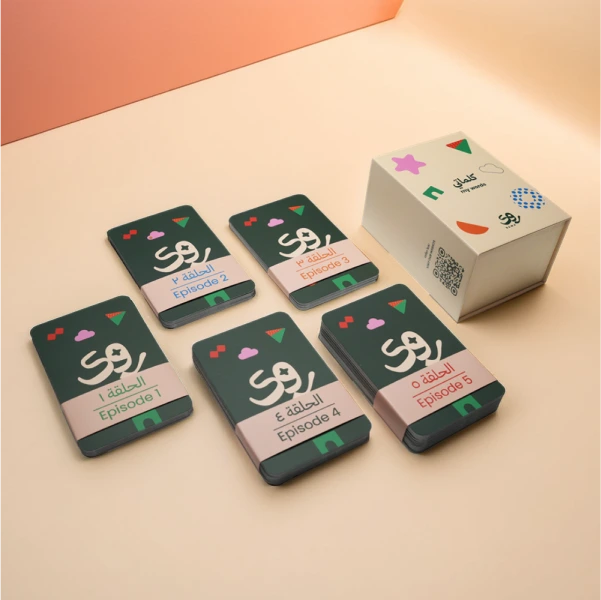 Rawa’s educational flashcards are specially designed to support the Rawa program in building Arabic vocabulary for children in a fun and interactive way. The cards feature essential words inspired by the episodes and activities, helping children connect learning with play and singing. With these cards, children easily acquire new vocabulary and strengthen their understanding of the Arabic language in an engaging and stimulating environment.